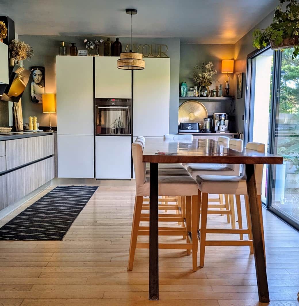 La grande table de salle à manger vous permet de partager des repas conviviaux en famille ou entre amis, dans une ambiance douce et contemporaine.